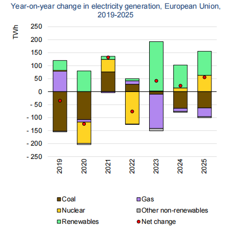 根據國際能源署預測,隨著能源價格降低和電氣化的進一步推進,歐洲地區電力需求量從2023年開始將以年均1.4%的速度增長。同時國際能源署認為,歐盟目前的碳排放量增長是暫時的,預計到2025年,歐洲的發電相關碳排放量平均每年將減少約10%。隨著可再生能源發電量和核發電量的增加,歐洲煤炭和天然氣發電量將會大幅下降,降幅分別為年均10%和12%。