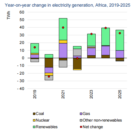 非洲電力需求2022年同比增長1.5%,低于國際能源署此前預測的4%,原因是俄烏沖突導致能源價格上漲和通貨膨脹高企,以及南非實施了大規模限電措施。2022年非洲地區總發電量中,天然氣占比42%,煤炭占比27%,可再生能源占比24%,石油占比5%,核能占比1%。預計2023年非洲電力需求將同比增長3%以上,2024年和2025年增長率平均為4.5%左右。到2025年,該地區可再生能源發電量占比將增至30%,燃煤發電量占比將下降至24%。