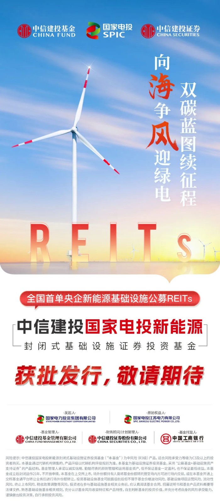 國家電投新能源REIT由江蘇公司作為原始權益人,江蘇海風擔任運營管理機構,底層資產為國家電投江蘇公司旗下濱海北H1、濱海北H2海上風電場和配套運維驛站,屬于國家發改委《關于進一步做好基礎設施領域不動產投資信托基金(REITs)試點工作的通知》(發改投資〔2021〕958號)納入試點范圍的新能源基礎設施。該項目于今日正式獲得證監會及上交所批復,標志著我國公募REITs資本市場實現資產類型新突破,具有里程碑式的重要意義。