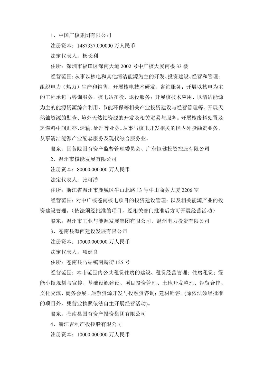 中廣核蒼南第二核電有限公司首次注冊資本金為5000萬元。