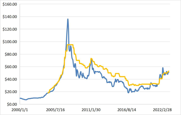 2020年1月—2023年1月末現(xiàn)貨鈾價和長貿(mào)鈾價