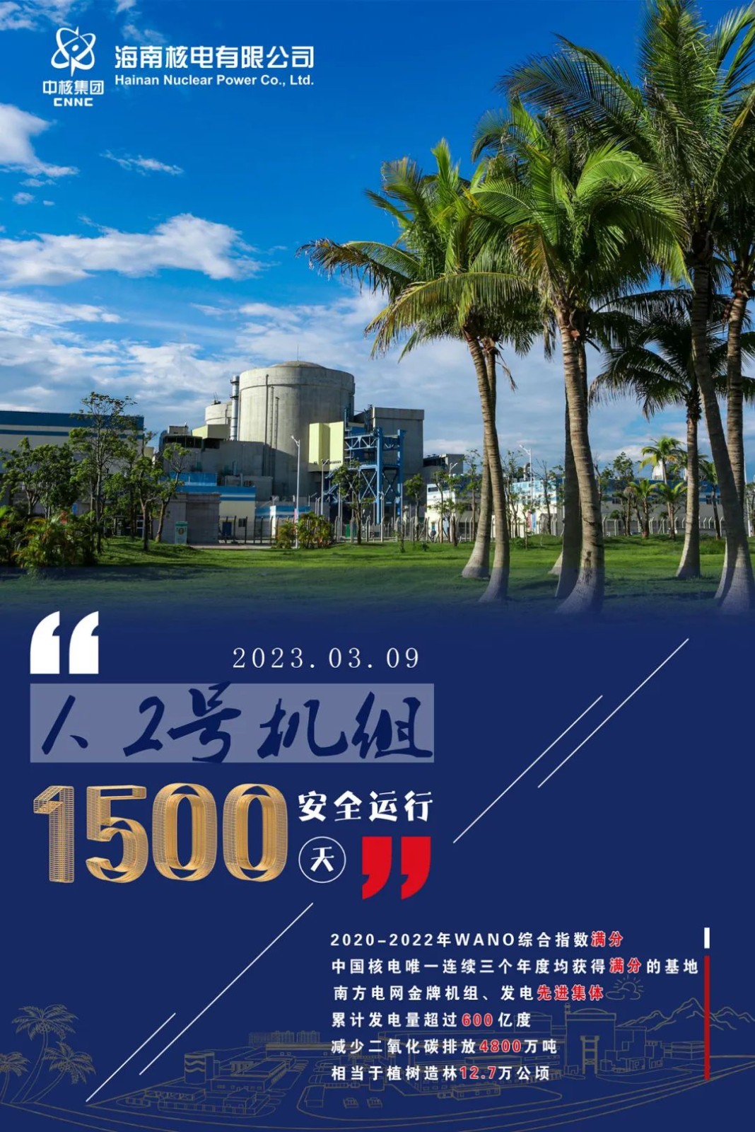 目前,海南核電雙機組各項性能指標持續優良,正在向連續安全運行更高的目標前行,持續為海南自由貿易港建設提供安全、清潔、高效、穩定的綠色能源!