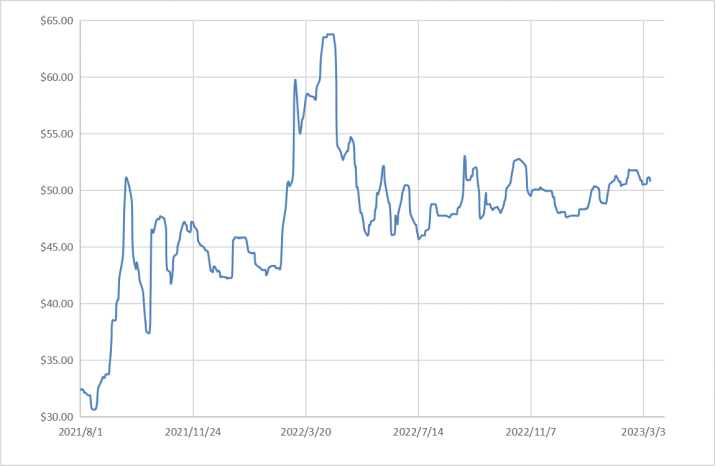 2021年8月—2023年3月鈾價