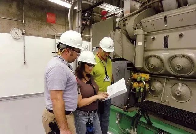 現場檢查員對應急發電機的油壓調節進行目視檢查。(圖源:TÜV SÜD)