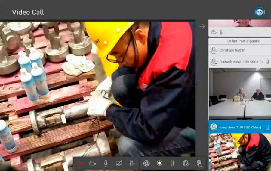 在遠程檢查人員觀看現場技術人員工作。(圖源:TÜV SÜD)