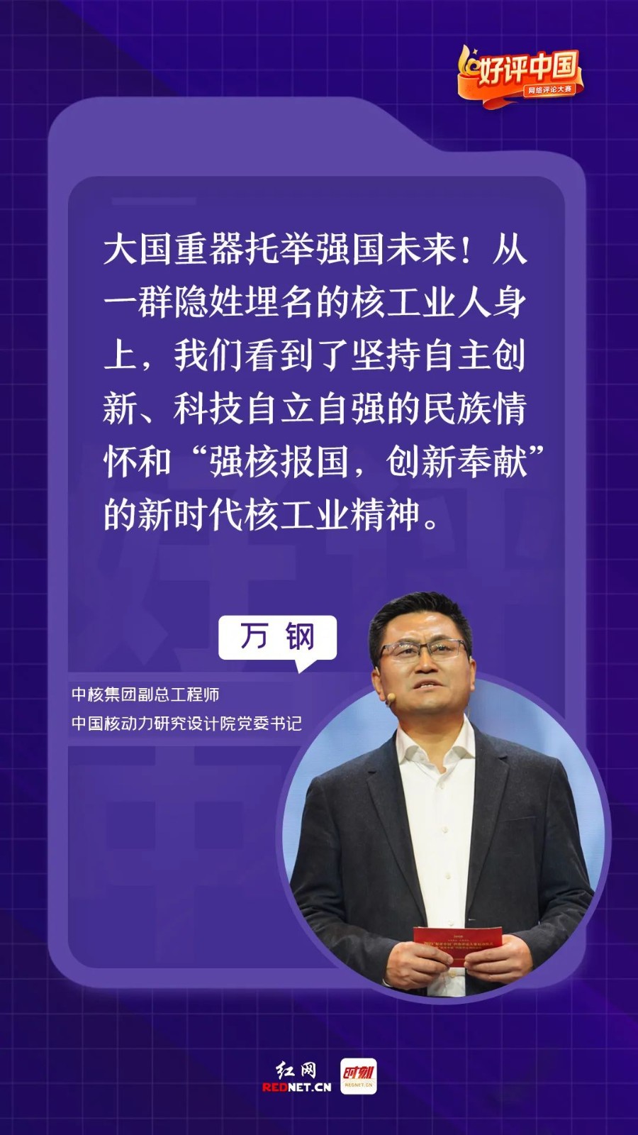 3月31日,2023“好評中國”網(wǎng)絡(luò)評論大賽啟動儀式暨“好評中國”網(wǎng)絡(luò)評論創(chuàng)新論壇在湖南長沙舉行。活動現(xiàn)場,中核集團副總工程師、中國核動力研究設(shè)計院黨委書記萬鋼現(xiàn)場講述《大國重器托舉強國未來》。
