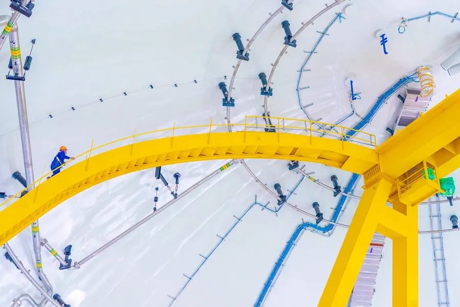漳州核電2號機組內穹頂成功吊裝后工作人員進行后續安全檢查