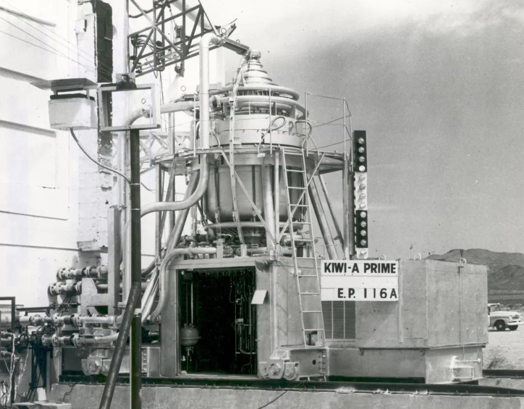 KIWI-A的設(shè)計目標(biāo)是產(chǎn)生約100 MW的電力,最終試驗功率僅為70 MW。KIWI-A是一個高溫氣冷反應(yīng)堆,證明氫氣在經(jīng)過核反應(yīng)堆加熱后可以用于太空推進(jìn)。KIWI-A系列進(jìn)行了多個反應(yīng)堆試驗,包括KIWI-A(1959年7月)、KIWI-A'(1960年7月)和KIWI-A3(1960年10月)。KIWI-A'試驗中達(dá)到88 MW并持續(xù)了6分鐘,KIWI-A3試驗中達(dá)到112.5 MW并持續(xù)超過4分鐘。