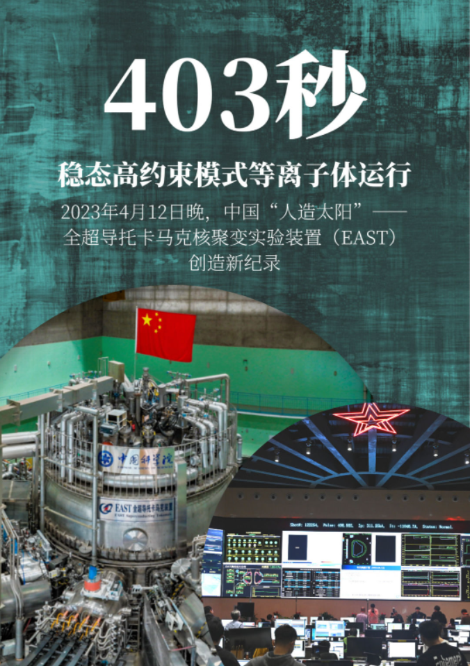 4月12日晚,經(jīng)過十幾年聚力攻關(guān),EAST成功實現(xiàn)穩(wěn)態(tài)高約束模式等離子體運行403秒,刷新2017年的101秒世界紀(jì)錄,實驗現(xiàn)場一片歡騰。