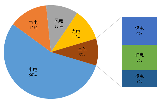 2021年,巴西總發(fā)電量為6544億千瓦時。其中,水電是巴西第一大電力來源,水電發(fā)電量為3628億千瓦時,在全國電力結(jié)構(gòu)中占比55.4%。巴西燃氣發(fā)電量為869億千瓦時、風電發(fā)電量為723億千瓦時、光伏發(fā)電量為717億千瓦時、燃煤發(fā)電量為241億千瓦時、燃油發(fā)電量為219億千瓦時、核電發(fā)電量為147億千瓦時。人均全社會用電量約為2580千瓦時/人。由于國土面積大部分位于熱帶雨林地區(qū),巴西有豐富的水電資源,水電也成為了巴西最大的電力來源。巴西水電在國家電力結(jié)構(gòu)中的占比僅次于加拿大,位居世界第二位。水電占比大,也使得巴西在干旱的年份也容易出現(xiàn)用電短缺情況,為此巴西積極發(fā)展核電等電力形式,減少對水電的過分依賴。