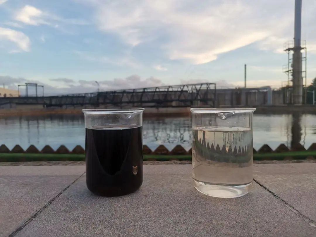 ▲電子束技術(shù)處理印染廢水前后對比