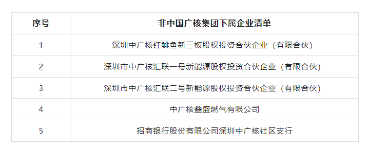 非中國廣核集團下屬企業的5家企業清單
