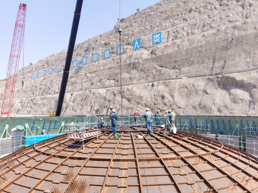 田灣項監部高度重視穹頂拼裝工作,從施工文件審查、壁板預制、圖紙會審、施工交底等環節入手,層層把關,力求施工過程、吊裝就位等全方位、全過程可控,相關負責人員對穹頂拼裝過程中的安全風險和質量風險進行全程旁站監督,確保穹頂拼裝順利完成。