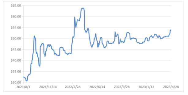 2021年8月—2023年4月單日現貨鈾價