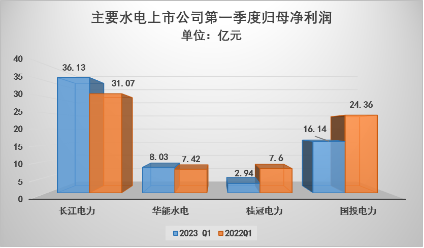 作為A股市值最高、全球最大的水電上市公司,長江電力管理運(yùn)營三峽、葛洲壩、溪洛渡、向家壩、烏東德、白鶴灘等6座巨型水電站。2023年第一季度,長江電力公司營業(yè)收入153.97億元,同比增長25.17%;歸母凈利潤36.13億元,同比增長16.28%。作為雅礱江流域水電開發(fā)主體,國投電力2023一季報(bào)營收入132.56億元,同比上升20.05%;歸母凈利潤16.14億元,同比上升55.53%。