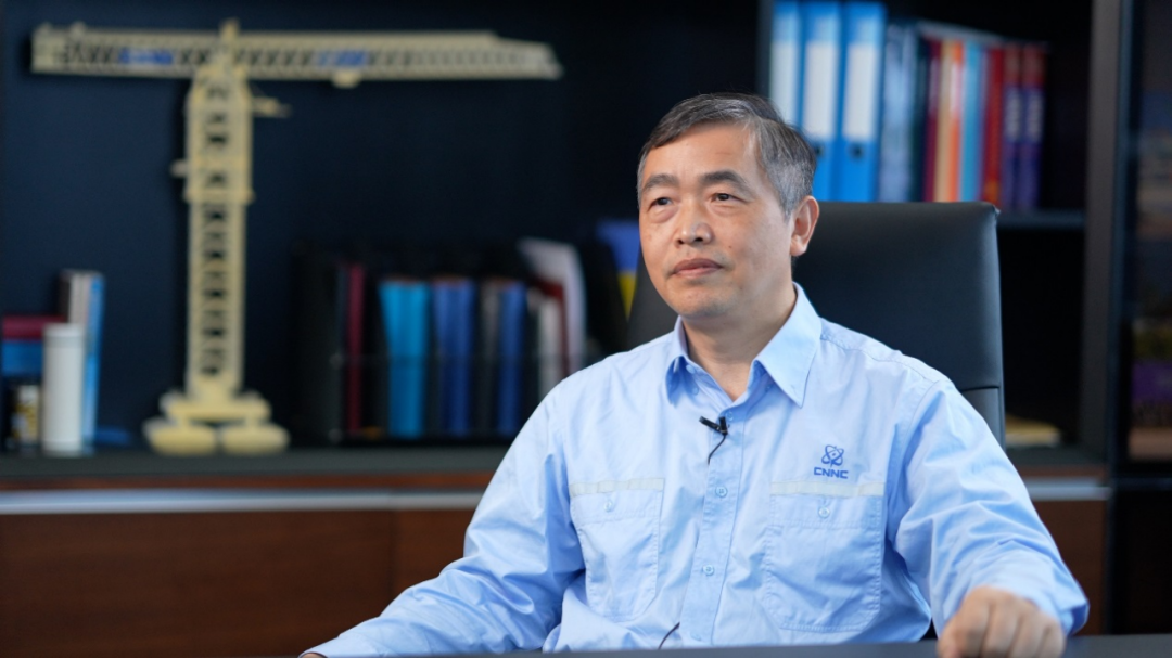 2023年4月23日,中核國電漳州能源有限公司總經理宋豐偉在漳州核電站辦公室接受中國國際電視臺采訪。