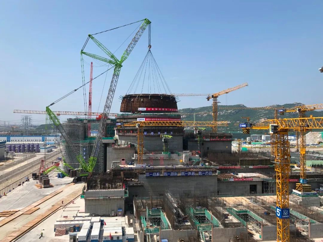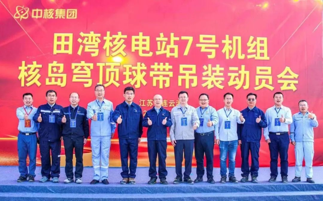 兩年之后同一天,2023年5月19日,中核集團旗下中國核電投資控股田灣核電7號機組穹頂球帶成功吊裝,標志著該機組從土建施工高峰全面轉入安裝階段!