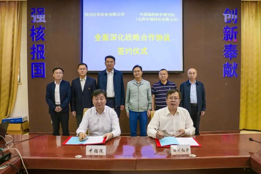 5月23日,中國輻射防護研究院與四川紅華實業有限公司在山西太原簽署全面深化戰略合作協議,中輻院黨委書記劉群,四川紅華黨委書記、董事長龍同光分別代表雙方簽署協議。中輻院副院長于偉躍,四川紅華副總經理胡光宇出席簽約儀式。