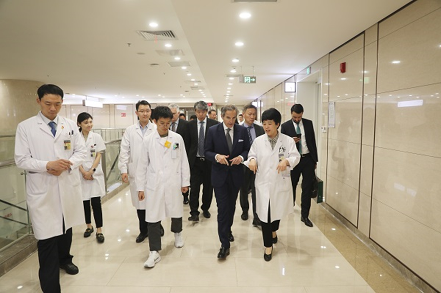 格羅西先生特別指出,IAEA倡導(dǎo)的多組織間的合作收效顯著。他表示國際原子能機(jī)構(gòu)提出的“希望之光”倡議,核心是要幫助中低收入國家提升核技術(shù)在腫瘤治療領(lǐng)域應(yīng)用的能力,中核集團(tuán)為推進(jìn)中國“一縣一科”規(guī)劃落地開發(fā)的核醫(yī)療整體解決方案與“希望之光”倡議高度契合,該項(xiàng)目已在非洲取得了良好的開端,將來會(huì)惠及更多的國家和地區(qū)。格羅西先生高度評(píng)價(jià)北京協(xié)和醫(yī)院核醫(yī)學(xué)科作為高端的平臺(tái),擁有專業(yè)的團(tuán)隊(duì),在癌癥診療方面,居世界領(lǐng)先水平。此次到訪讓他更加相信中國將為“希望之光”發(fā)揮更重要的作用,希望可以聯(lián)合北京協(xié)和醫(yī)院核醫(yī)學(xué)科高超的技術(shù)水平和專家資源、中核集團(tuán)核醫(yī)療整體解決方案,一起通過“希望之光”為中低國家的核醫(yī)療能力提升貢獻(xiàn)力量。同時(shí)在IAEA 的協(xié)調(diào)下,走向國際的同時(shí),也將為北京協(xié)和醫(yī)院核醫(yī)學(xué)科進(jìn)一步發(fā)展,加強(qiáng)對(duì)外交流,提供更多的機(jī)會(huì)和更好的平臺(tái),促進(jìn)科室和醫(yī)院發(fā)展,令中國核醫(yī)學(xué)如虎添翼,更加卓越。