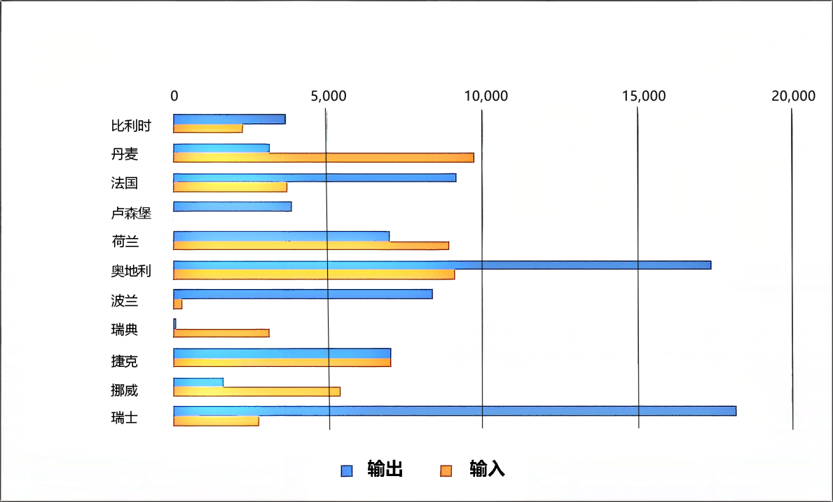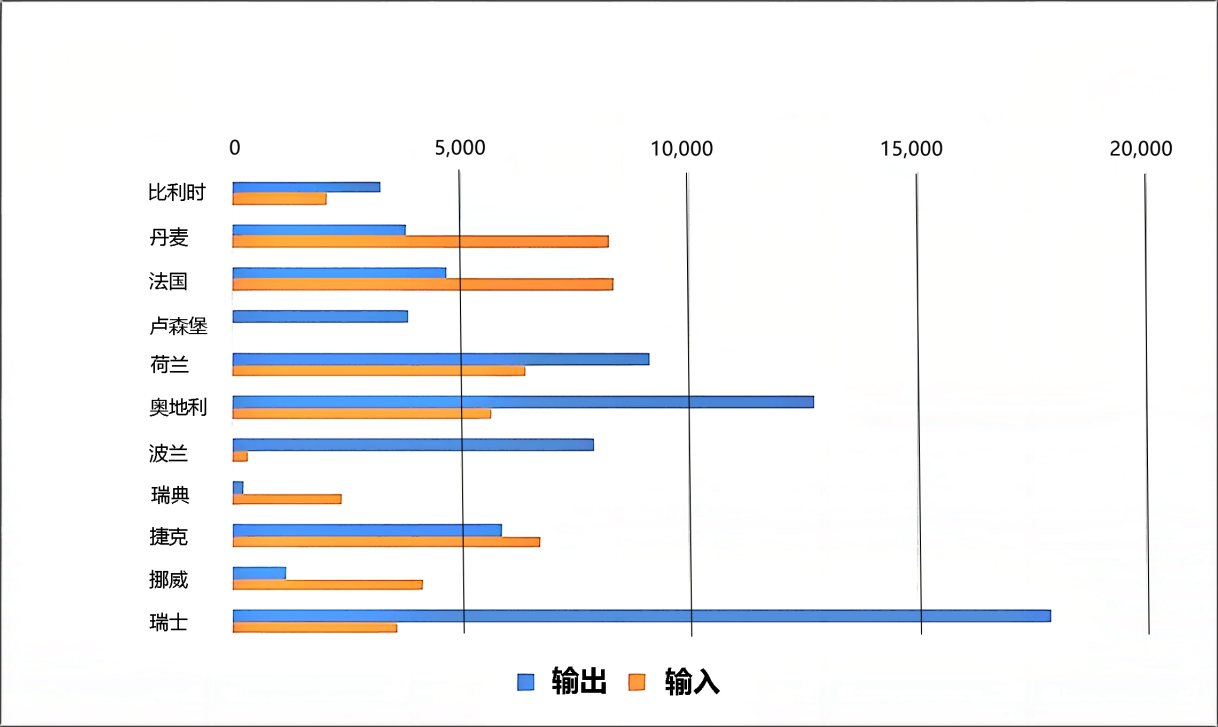 圖7 德國2022年與鄰國電力輸出輸入交易量對比(單位:吉瓦時)