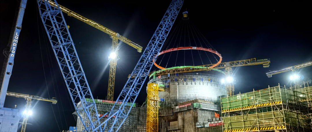 6月8日0時27分,徐大堡核電3號機組環吊梁與環軌組合模塊順利吊裝就位,為3號機組反應堆廠房后續環吊安裝及穹頂吊裝節點打下了堅實基礎。