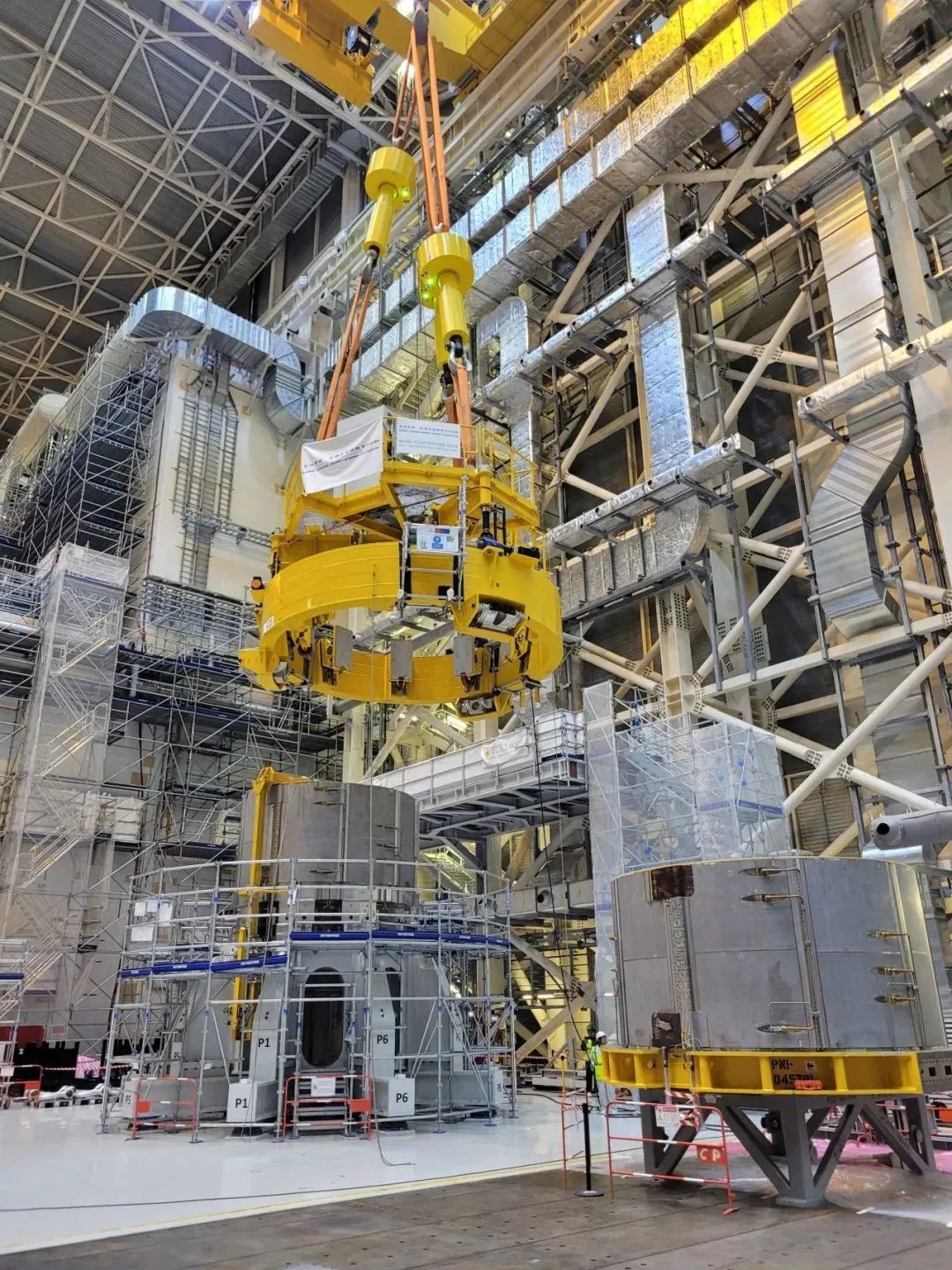 2023年6月6日,中央螺線管磁體系統(tǒng)(CS)第一個模塊CS3L成功實現(xiàn)最終就位,后續(xù)還將有5個CS模塊陸續(xù)開始安裝。