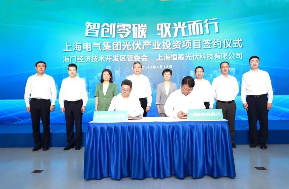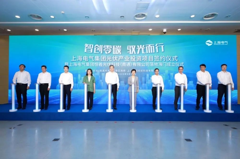 6月15日,上海電氣光伏產(chǎn)業(yè)投資項(xiàng)目簽約儀式暨上海電氣集團(tuán)恒羲光伏科技(南通)有限公司落地海門成立儀式舉行。儀式上,上海電氣全資子公司上海恒羲光伏科技有限公司(以下簡稱“恒羲光伏公司”)與南通市海門區(qū)人民政府簽署了產(chǎn)業(yè)投資協(xié)議,并舉辦南通子公司成立儀式。南通市委書記吳新明,上海電氣集團(tuán)黨委書記、董事長冷偉青出席見證,并就加快推動(dòng)項(xiàng)目建設(shè)、進(jìn)一步深化合作開展深入交流。