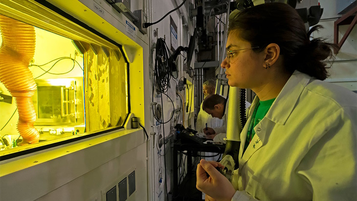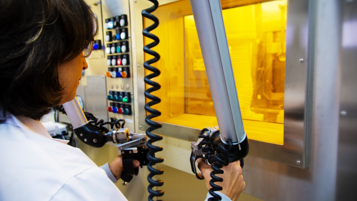 技術人員在生產Mo-99的熱室中使用機械手(圖片:Laurentis)