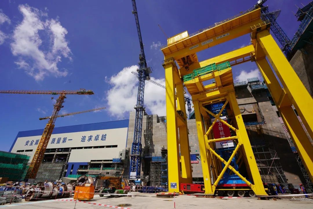 6月24日,由中核二三承建的太平嶺核電廠一期工程臨時轉運平臺,在太平嶺核電1號機組模塊化施工成功經驗的基礎上,再次實現歷史性突破,完成了由太平嶺核電1號機組整體拆除、運輸,并成功整體就位安裝于太平嶺核電2號機組,為后續主設備引入奠定了堅實基礎。這一臨時轉運平臺整體拆裝新工藝為核電行業首例,開創了核電廠大型鋼結構設備安裝效率的最高紀錄,打開了新時代核電安裝工程新局面。