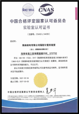 近日,海南核電有限公司輻射計量實驗室收到經中國合格評定國家認可委員會(簡稱CNAS)審核頒發的實驗室認可證書,標志海南核電有限公司輻射計量實驗室的管理體系及技術能力達到國家(國際)認可水平。