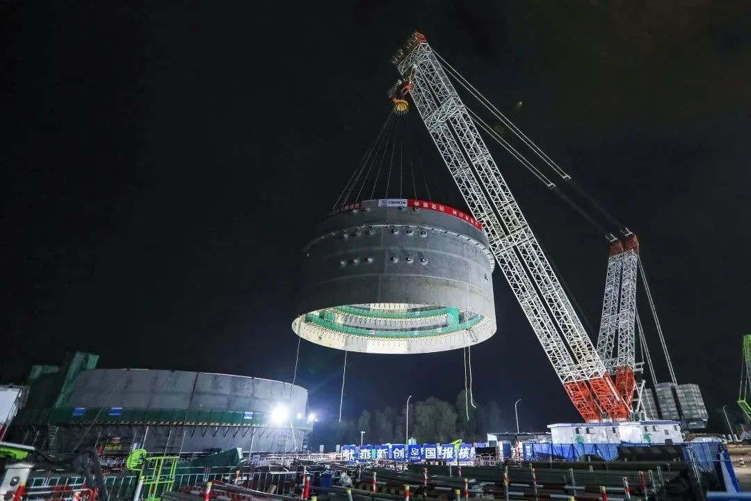 “玲龍一號” 核島鋼制安全殼(CV)上部筒體吊裝就位。——2022.07.06