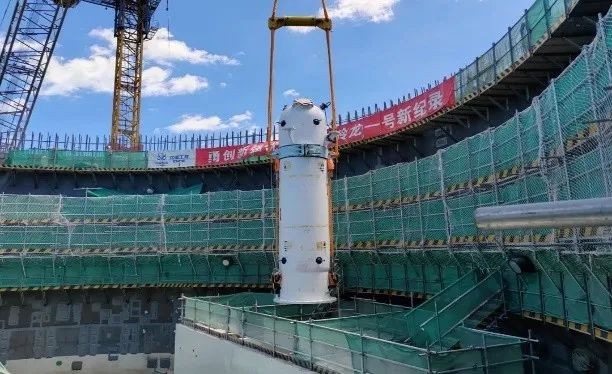 “玲龍一號”首臺主系統(tǒng)設(shè)備“穩(wěn)壓器”順利吊裝就位。——2023.07.06