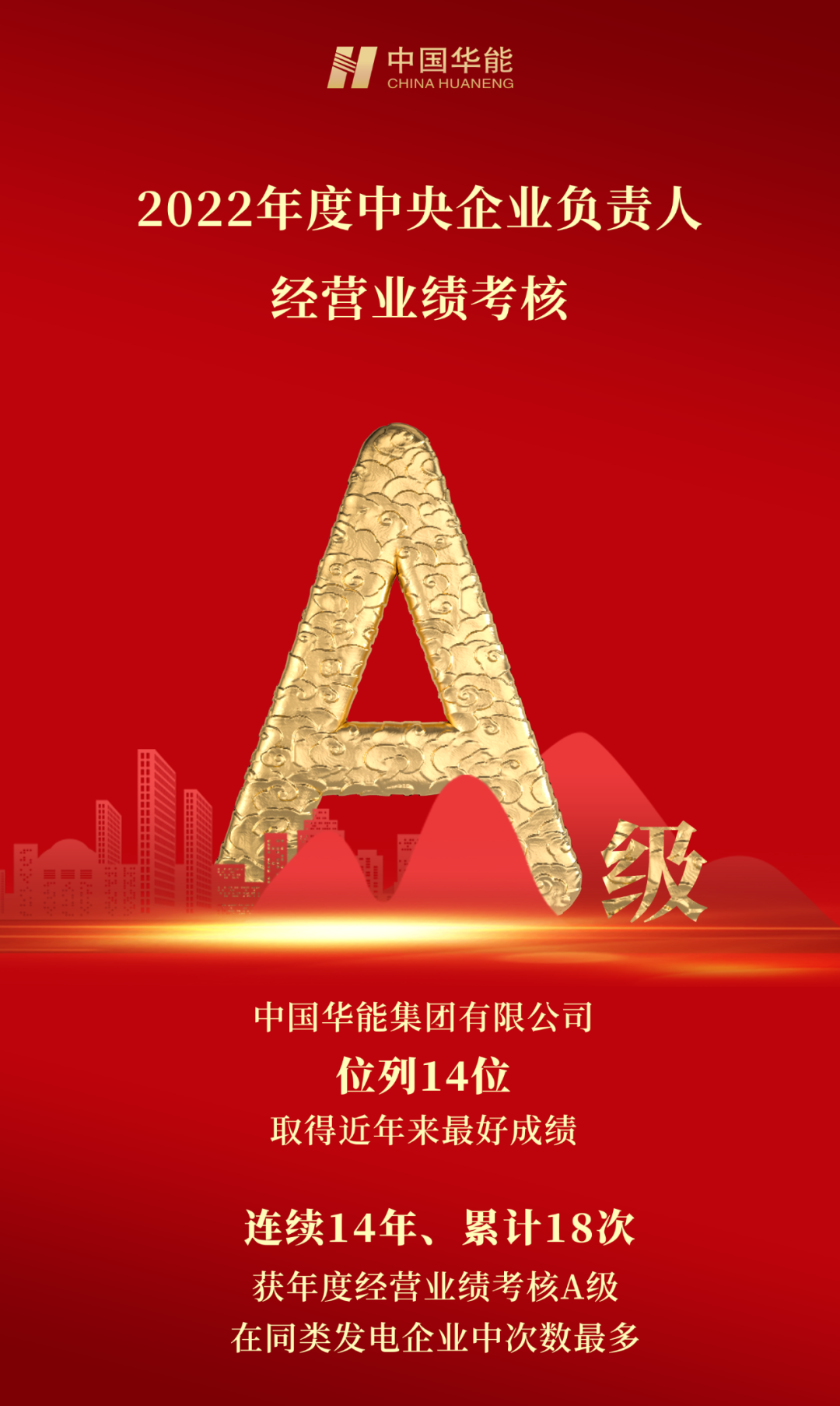 中國華能集團有限公司位列14位,取得近年來最好成績。這也是公司連續14年、累計18次獲年度經營業績考核A級在同類發電企業中次數最多。