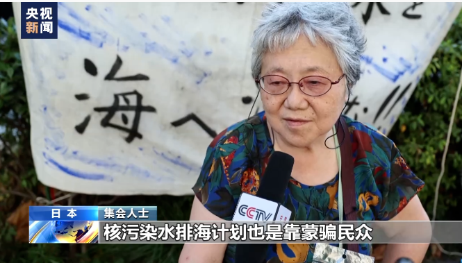 集會人士:我反對核污染水排海,通過食物鏈對人體會造成影響,其他的生物也都會受到影響,對全世界都會造成影響,所以絕不能將核污染水排放入海。
