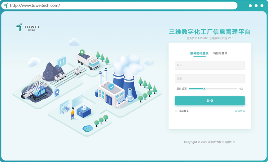 (純web端三維數(shù)字化工廠信息管理平臺T-Plant登錄界面)