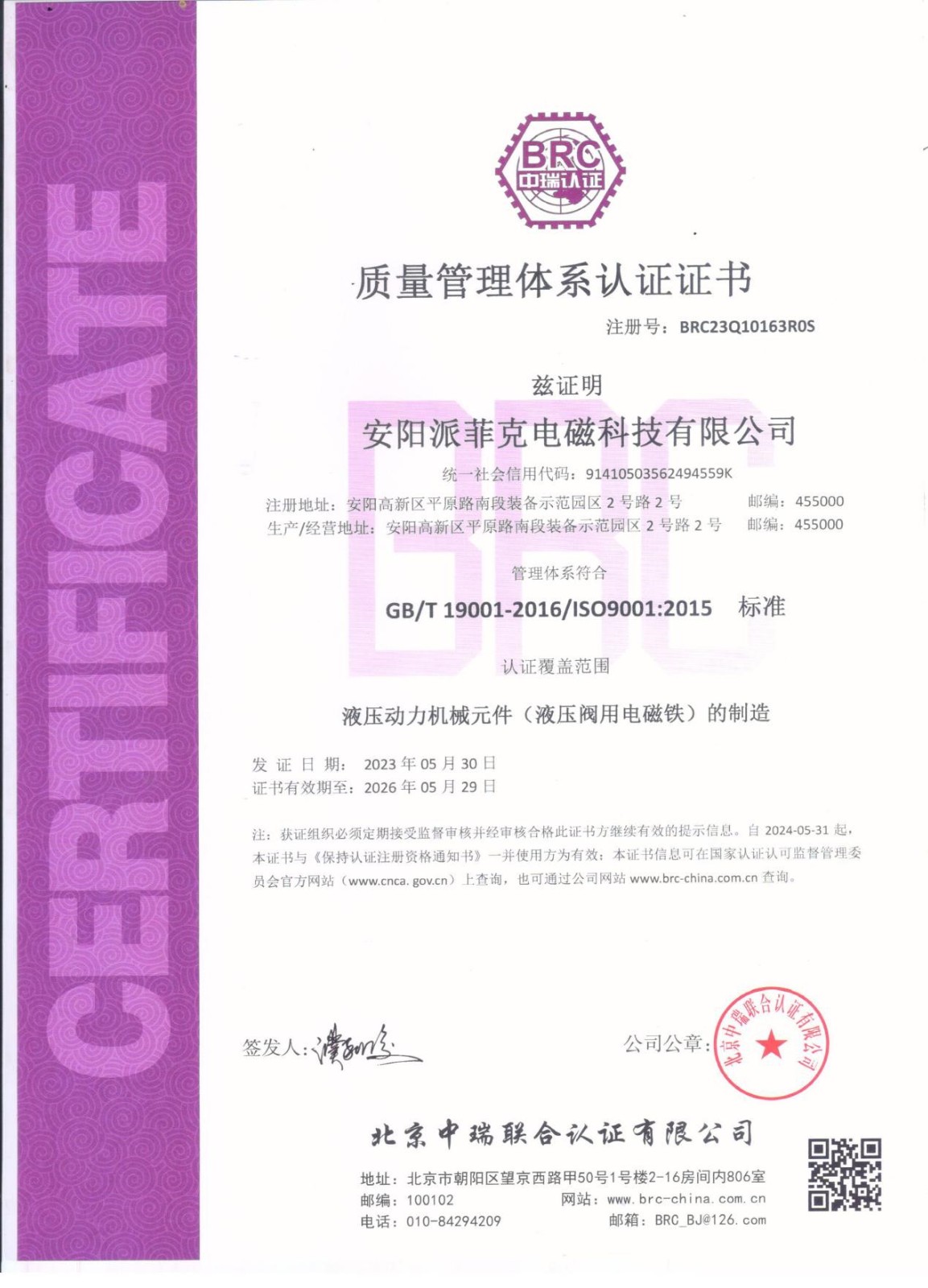 安陽派菲克電磁科技公司成立于2010年,公司位于河南省安陽市高新技術開發區,是液壓閥用電磁鐵專業研發生產廠家。近年來,公司發揮核心技術優勢,厚積薄發,進行了產品升級,進入精加工時代,比例電磁鐵逐步成為公司的主導的產品。