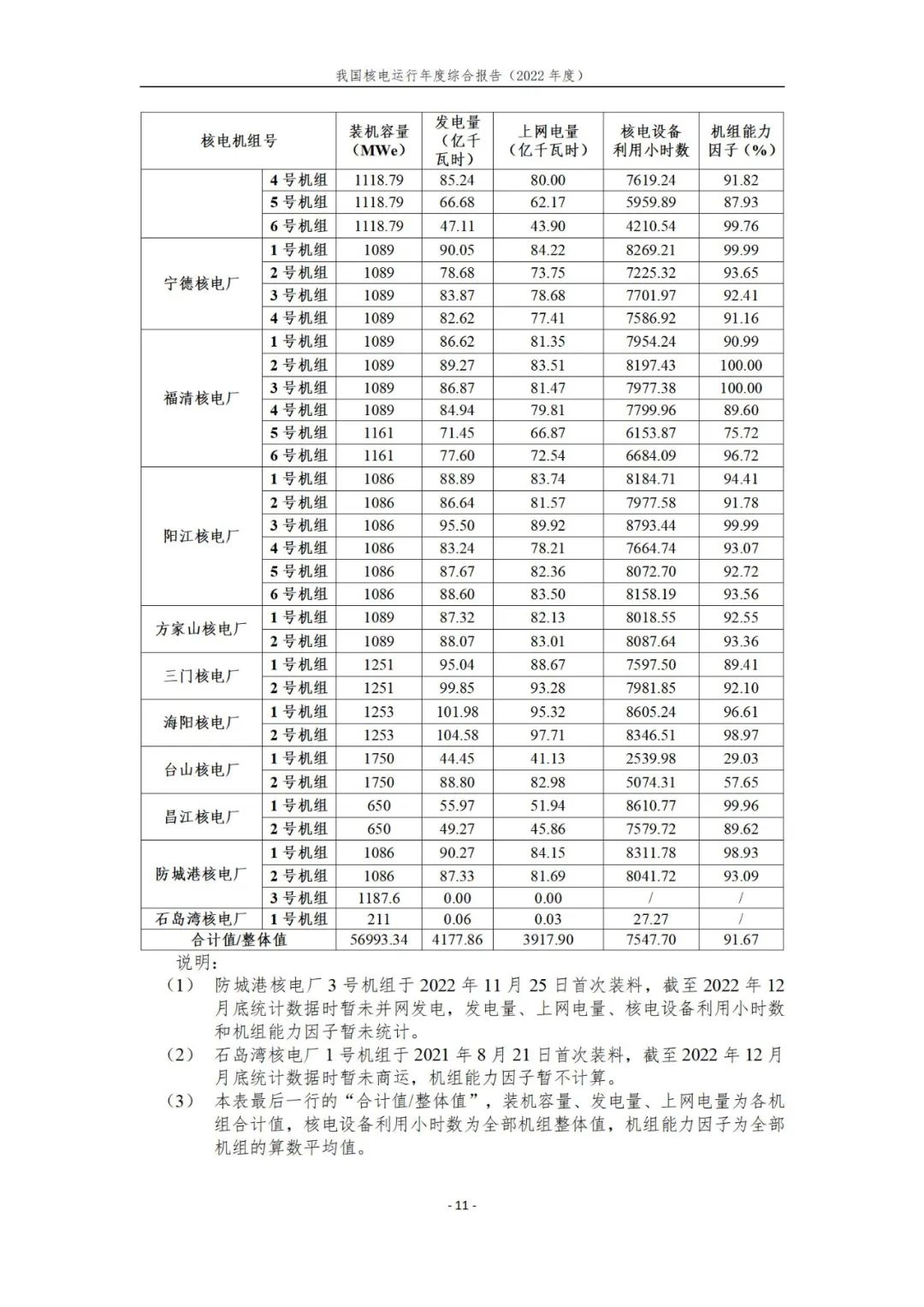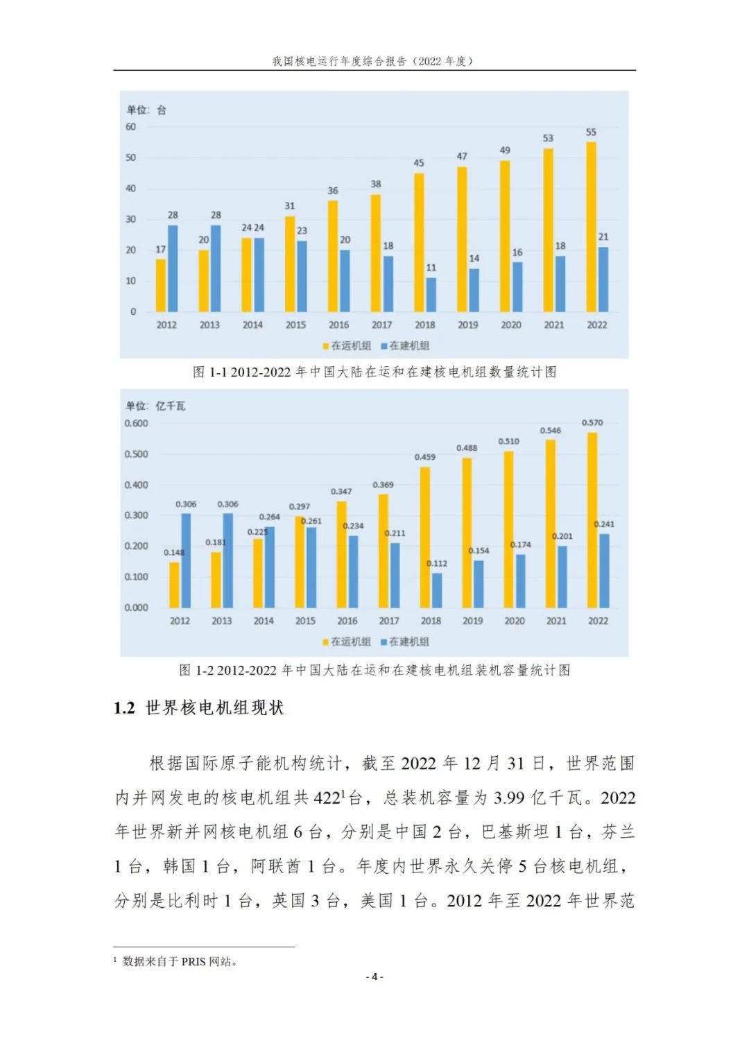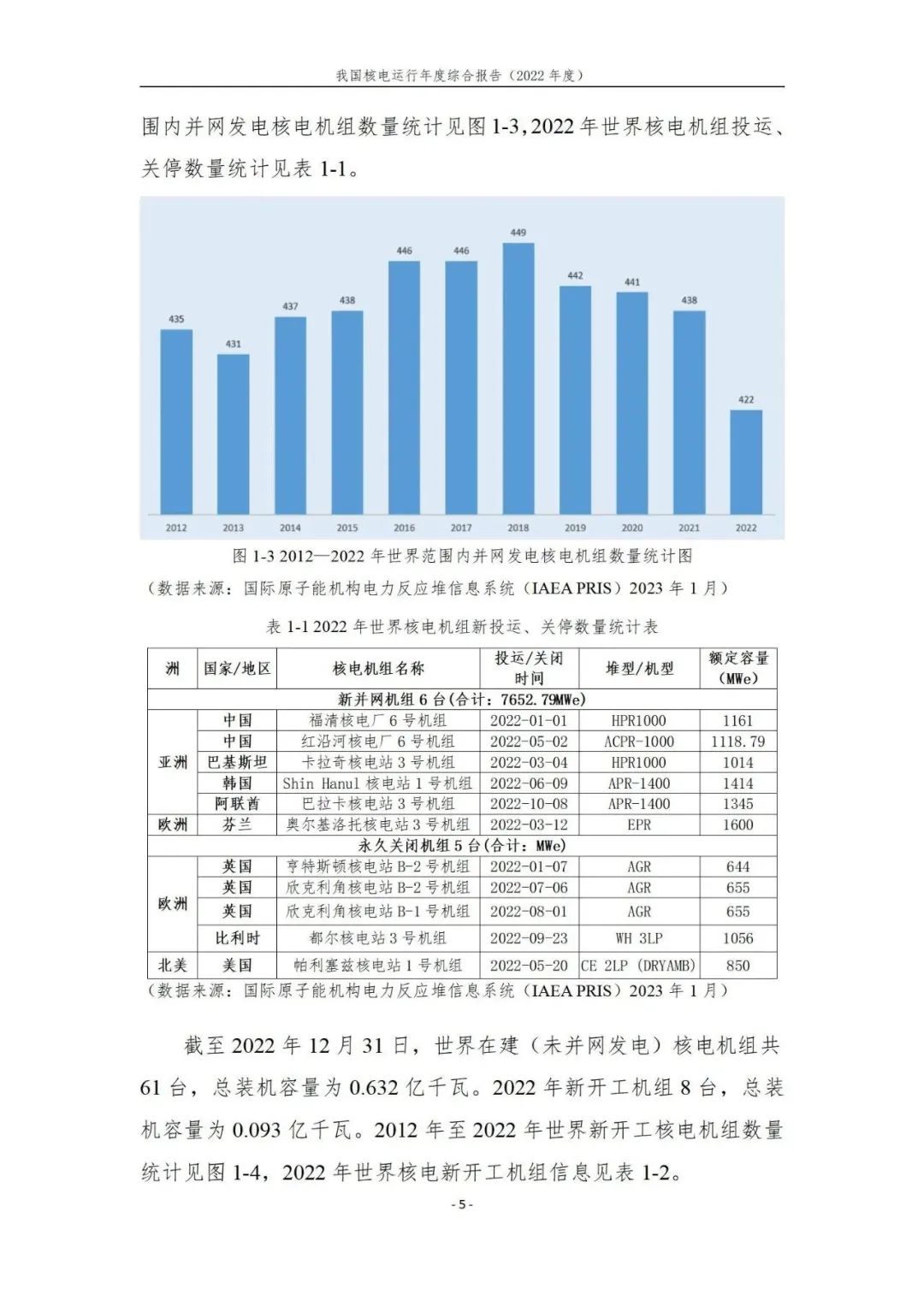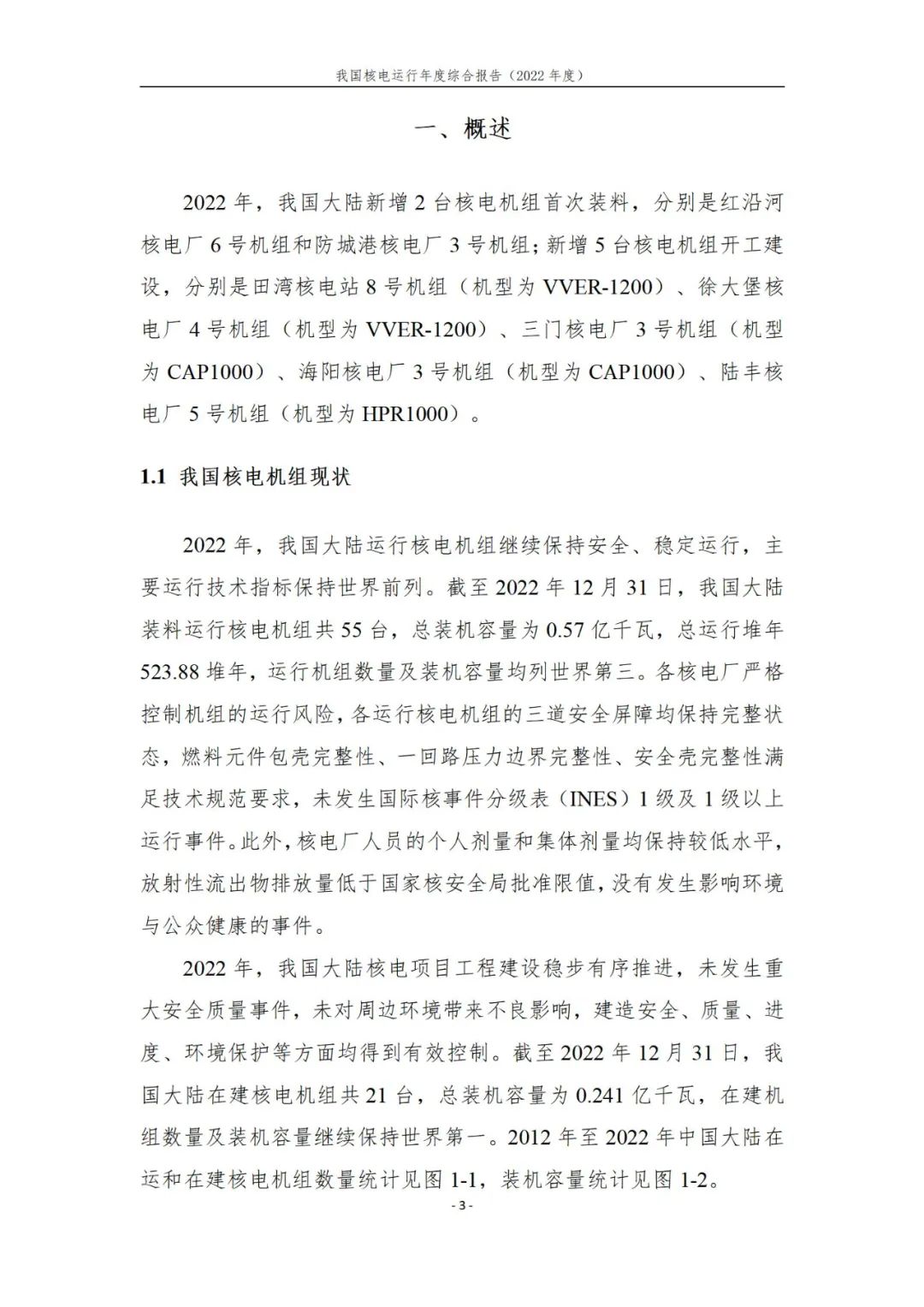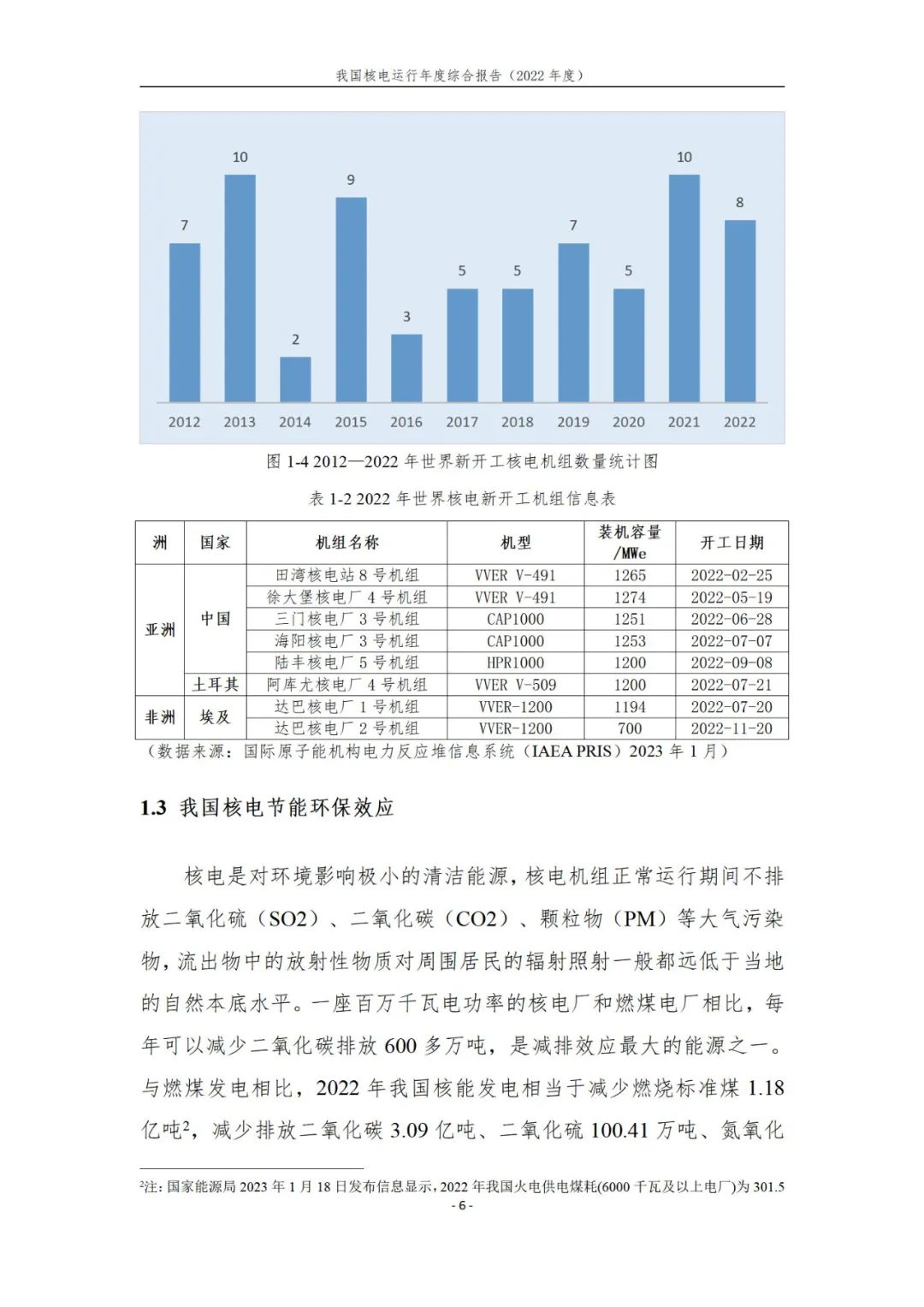 2022年,我國大陸新增2臺核電機組首次裝料,分別是紅沿河核電廠6號機組和防城港核電廠3號機組。