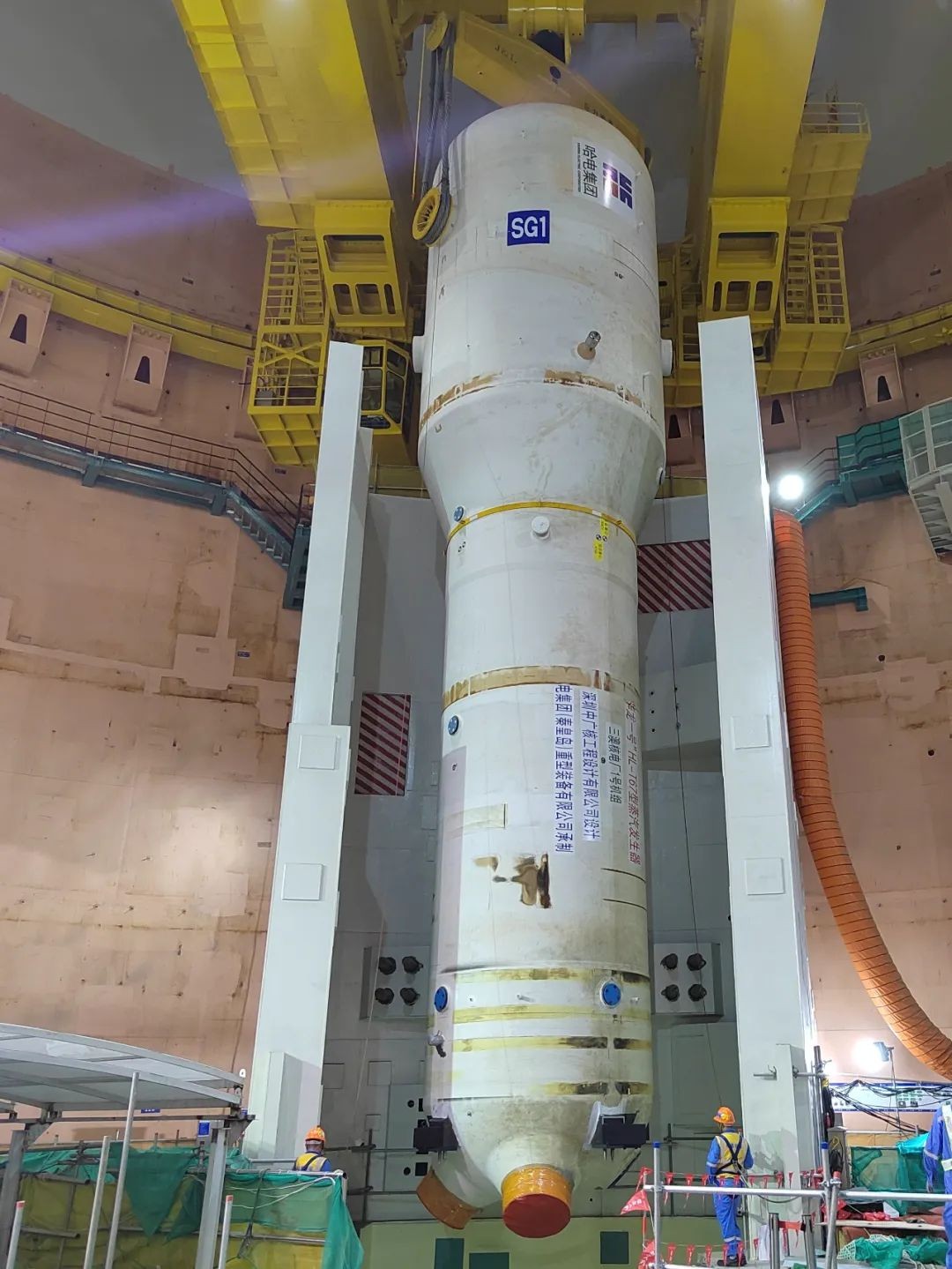 7月30日,中廣核浙江三澳核電項目1號機組首臺蒸汽發生器通過翻轉、平移等一系列復雜的操作后平穩就位于1號蒸汽發生器隔間,標志著三澳核電項目首臺主設備順利完成引入工作。
