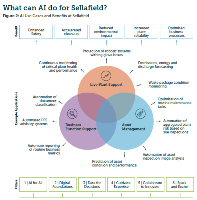 英國塞拉菲爾德公司2023年3月發(fā)布報告《人工智能戰(zhàn)略》,闡述了該公司在未來塞拉菲爾德核場區(qū)退役治理過程使用人工智能的原因、未來愿景,并概述了為實現(xiàn)這一愿景將采取的行動。