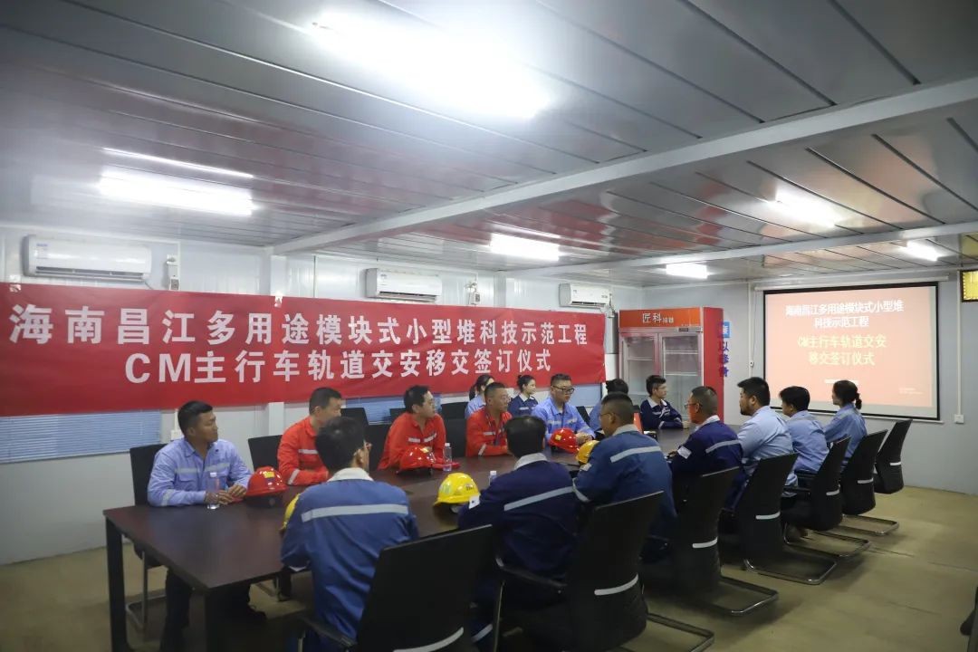 面對現場高溫環境施工作業難、高危懸挑腳手架搭設難、軌道梁埋件安裝精度高等諸多挑戰,中核二二昌江項目團隊充分發揮黨建引領作用,聯合上游單位成立“玲龍一號黨建聯建攻堅突擊隊”和聯合總指揮部,編制專項施工計劃;用BIM建模梳理先決條件,合理組織倒班施工,嚴格按照關鍵路徑推進進度;協調組織總包、監理、安裝等單位進行多方聯測,實地考察主行車軌道移交可行性,勘察現場施工細節,嚴格把控交安質量,確保節點高質量完成。