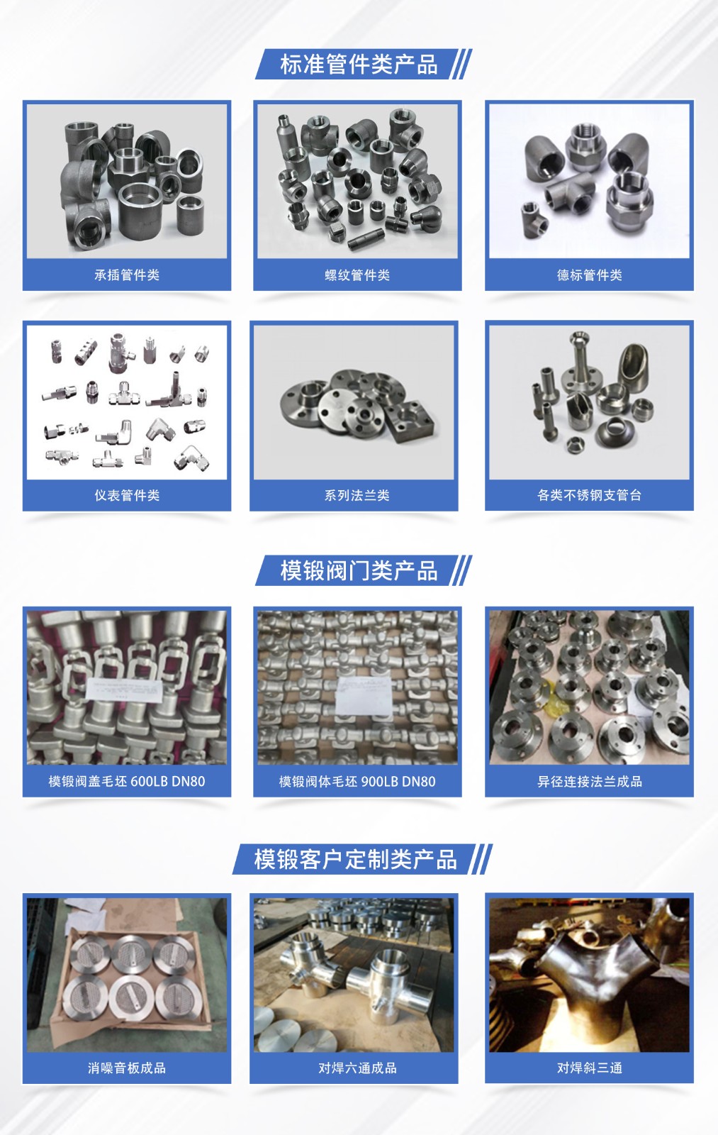 我公司具有健全的質量保證管理體系,優秀的制造團隊,不斷更新的制造裝備,完善的檢測手段和創新的制造工藝,先后牽頭制定了鍛制管件類產品的2項國家標準:《鍛制承插焊和螺紋管件》(GB/T 14383)和《鍛制支管座》(GB/T 19326),并參與制定了鋼制法蘭的12項系列國家標準(GB/T 9124.1-2)。同時擁有鍛造工藝的12項國家實用新型專利,獲得行業內充分的話語權。