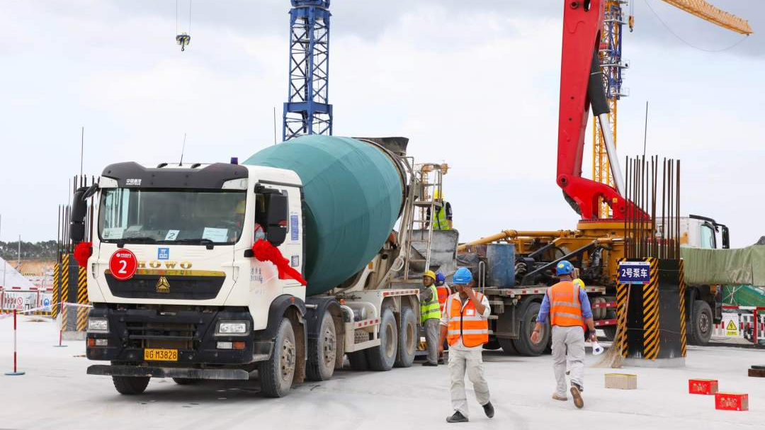 8月15日,1號(hào)機(jī)組現(xiàn)場(chǎng)機(jī)器轟鳴、吊臂起降、一片繁忙。15時(shí)整,隨著一聲令下,混凝土澆筑正式啟動(dòng),1號(hào)常規(guī)島順利實(shí)現(xiàn)第一罐混凝土澆筑(FCD)目標(biāo)。