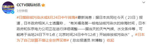 2023-08-23 16:11 來源:CCTV國際時訊 核污染 核廢水 核污染水 日本核電 福島核電站 東京電力公司