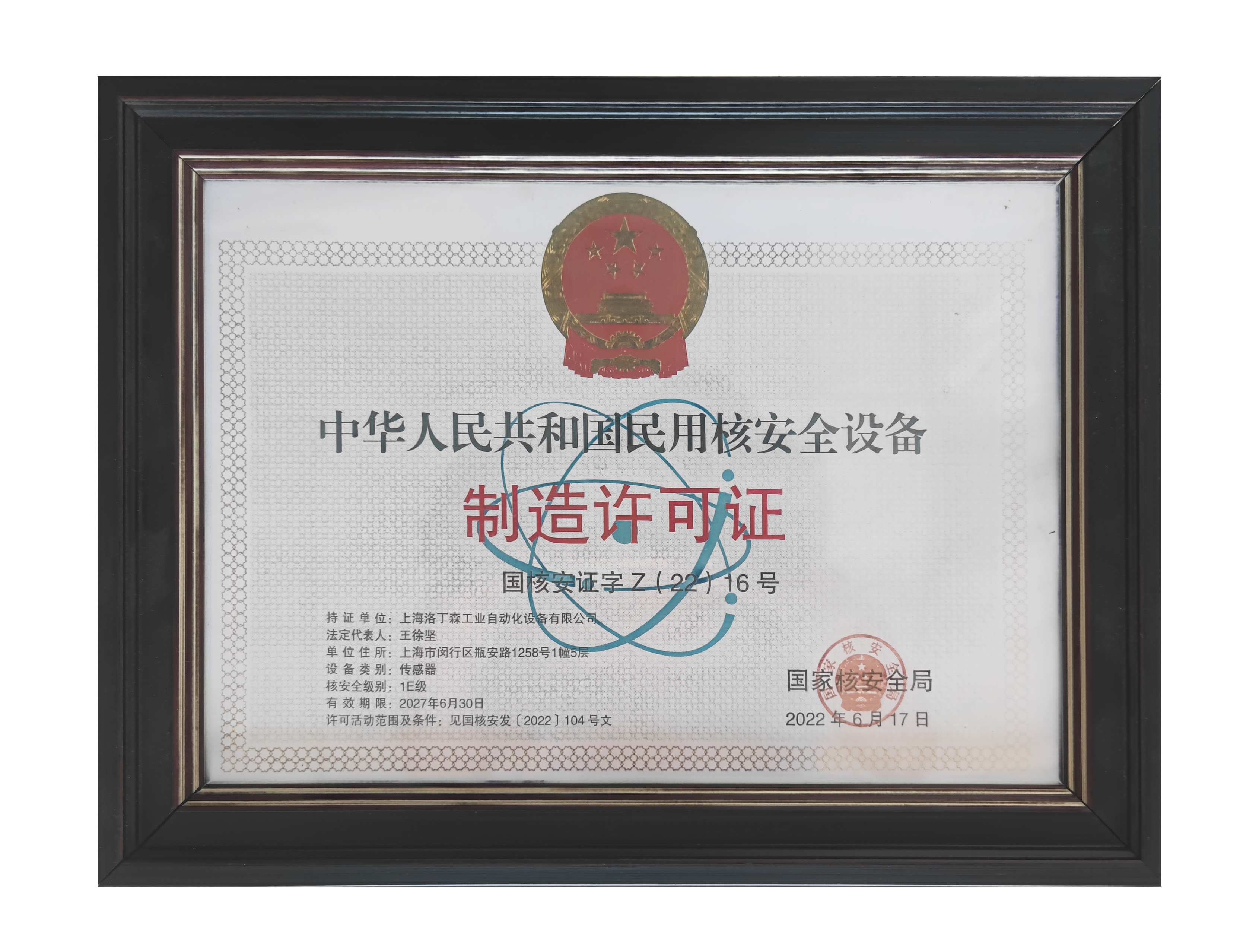 上海洛丁森工業(yè)自動化設(shè)備有限公司(以下簡稱為洛丁森)是一家專業(yè)從事工業(yè)自動化傳感器和儀器,特別是高精度智能壓力、差壓變送器及核安全級壓力、差壓變送器的設(shè)計、制造、銷售、技術(shù)服務(wù)為一體的國家級專精特新“小巨人”企業(yè)。公司擁有ISO9001、ISO14001、ISO45001三體系認(rèn)證,產(chǎn)品獲得包括NEPSI、ATEX、IECEX、SIL2、CE、3A、EAC、Rohs等多項國內(nèi)外認(rèn)證,并擁有國家民用核安全級壓力變送器設(shè)計、制造許可證。