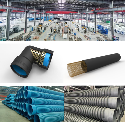 企業主營產品:鋼骨架聚乙烯塑料復合管及管件,鋼絲網骨架聚乙烯增強復合管及管件,鎖止防脫波形聚乙烯纏繞管,HDPE雙壁波紋管,HDPE纏繞結構壁B型管,PE管,MPP電力護套等。