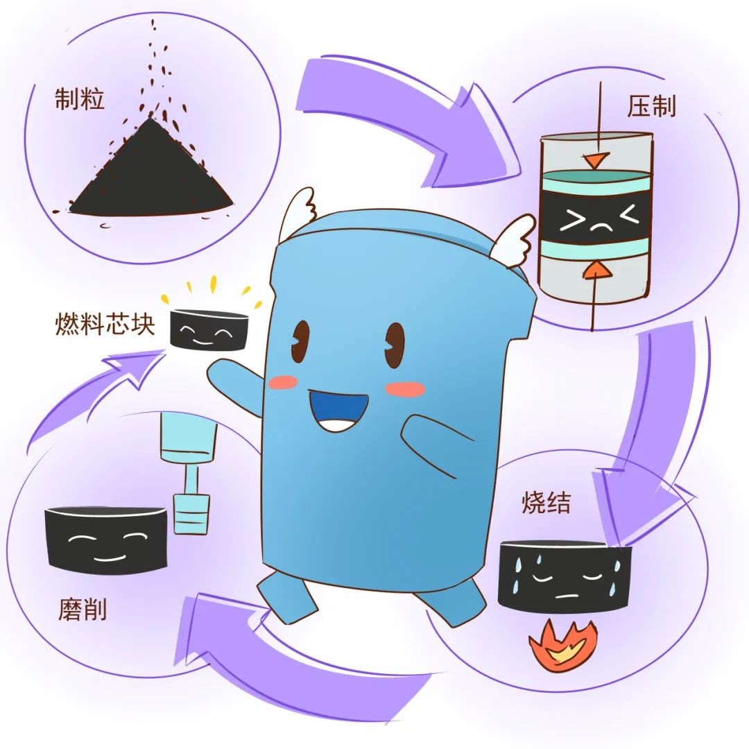 經過制粒、壓制、燒結、磨削等工序,我成為一顆燃料芯塊,別看我個頭小,在反應堆爐內可承擔燃燒、發熱的功能呢。