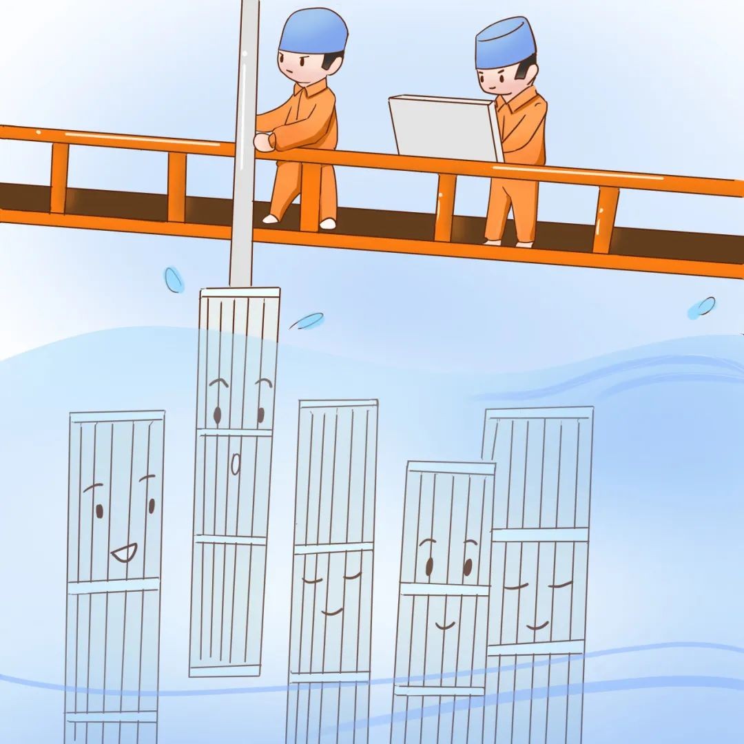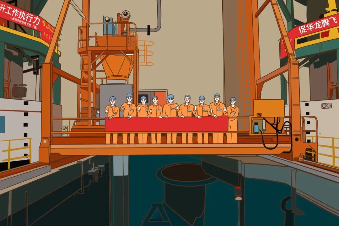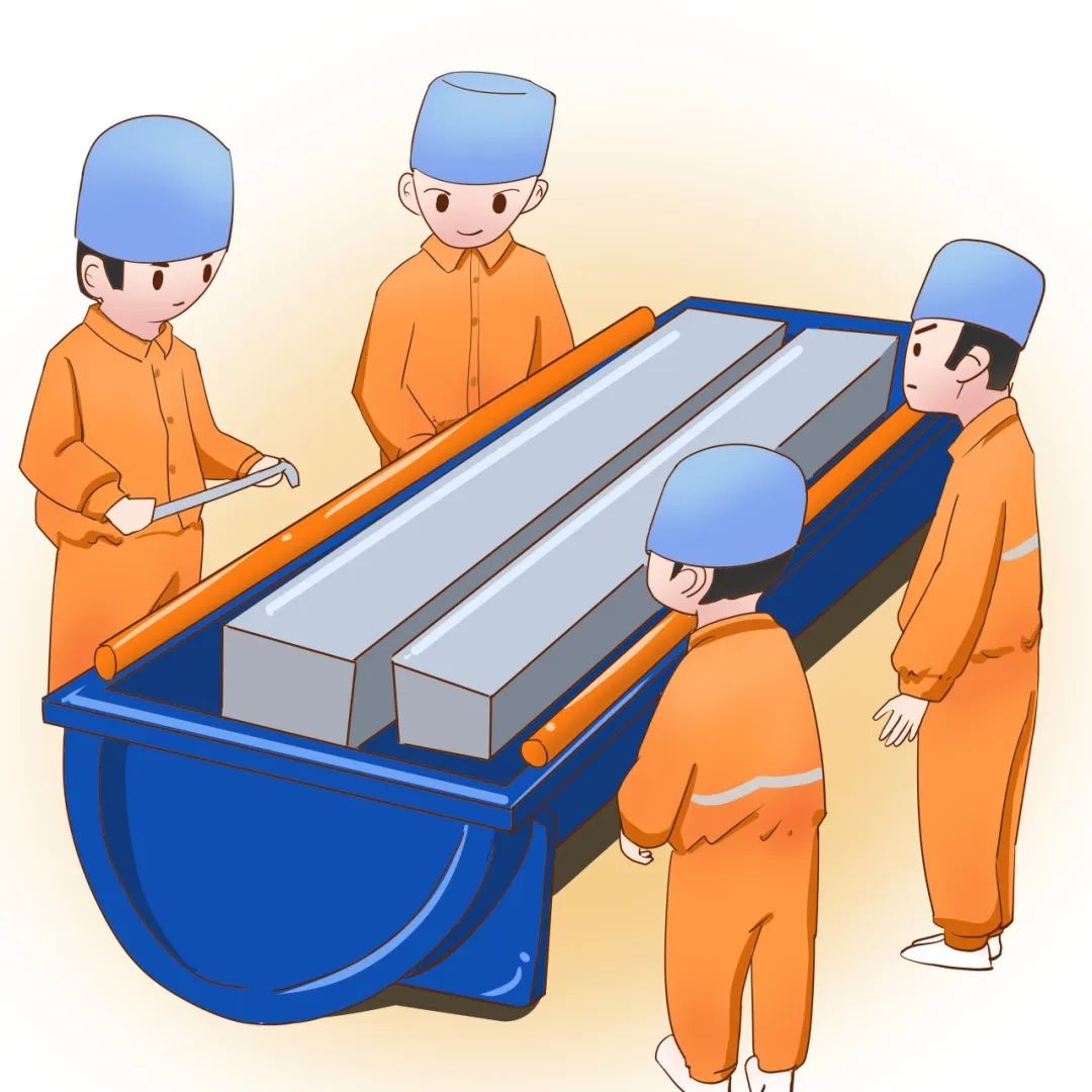 沒過多久我被吊運到燃料開箱間,在運輸容器被打開的那一剎那,我看見了一群“小橙人”。他們手里拿著各類扳手小心翼翼地為我松綁,將我放入水池內的貯存格架。