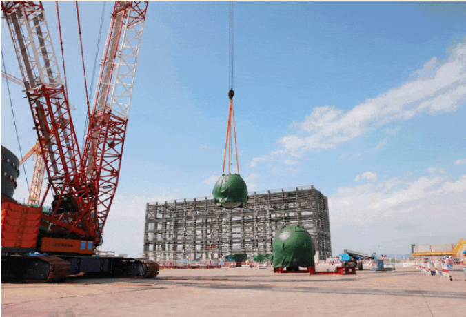 2023年9月9日15時28分、17時20分,三門核電3號機組兩臺安注箱分別吊裝就位,標志著3號機組首個設備安裝里程碑節點順利完成。