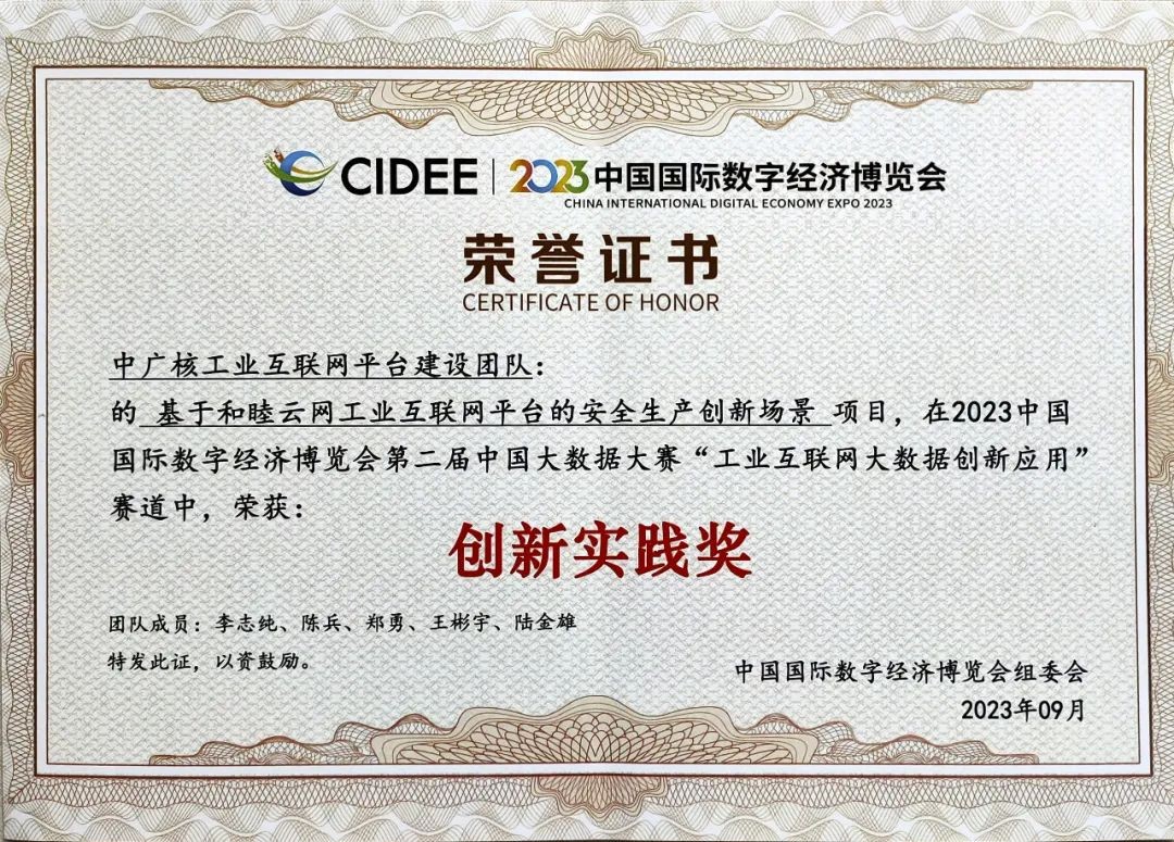 這是繼2023年3月份入選工業(yè)與信息化部工業(yè)互聯(lián)網(wǎng)平臺試點示范項目后,和睦云網(wǎng)再次獲得業(yè)界認可,更是對中廣核工業(yè)互聯(lián)網(wǎng)領域的技術實力和創(chuàng)新能力的充分肯定。