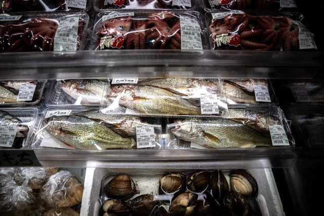 當(dāng)?shù)貢r(shí)間2023年8月31日,日本福島縣相馬市,超市內(nèi)來自福島縣的海鮮。